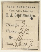 Личн. библiотека Тайн. Сов., Сенатора Н. А. Сергiевскаго